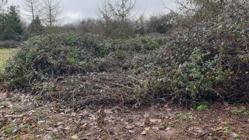 WHAT IS CAUSING BRAMBLE BUSH COLLAPSE? This phenomena has been evident on a scale I've not seen before this Winter. Large bramble masses have collapsed in the middle with woody stems seemingly gone. Above I have tried to show with my limited technical skills just how much bramble has disappeared. I'm still to nail this down and say with confidence which species are responsible. Some bramble patches form huge domes 5 to 10 metres across. They are an essential to ecosystems for example, protecting the ground for overwintering bees and providing shelter for a variety of small mammals. They provide nutrition for herbivores and invertebrates with extended cover and a range of microhabitats within their dense and thorny mass.