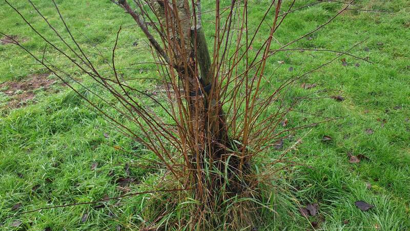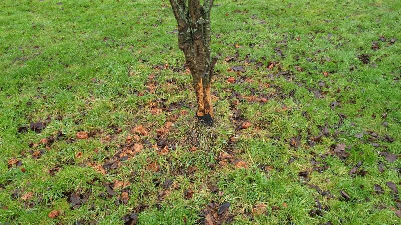 Evidence of bark nibbling which is almost certainly rabbits judging by the height.