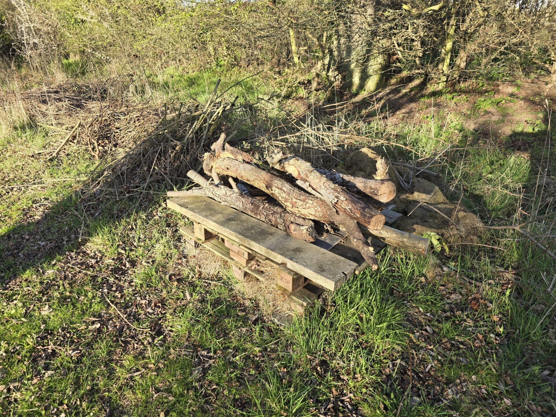 The recent wet weather in Jan and Feb has resulted in some trees falling and in this case Hawthorn rootstock has toppled and provided excellent timber for construction in the forest school. If you look close you can see that each branch has been cut at the best V position to allow easier tethering for any projects it is used for. Because its Hawthorn there are quite a few thorns protruding from the branches and the main stems so these have to be carefully romoved. This tree featured in a brief video Root stock - a valuable resource, on the Winter 24/25 diary page.