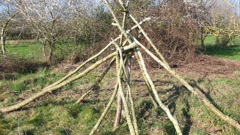 The recent wet weather in Jan and Feb has resulted in some trees falling and in this case Hawtrhorn rootstock has toppled and provided excellent timber for construction in the forest school. If you look close you can see that each branch has been cut at the best V position to allow easier tethering for any projects it is used for. Because its Hawthorn there are quite a few thorns protruding from the branches and the main stems so these have to be carefully romoved. This tree featured in a brief video Root stock - a valuable resource, on the Winter 24/25 diary page.