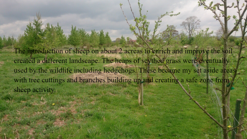 My son has developed a real enthusiasm for sheep and enjoys feeding them. He is also quite good at poo picking. Friends and families children visiting the site have always enjoyed feeding the sheep and watching them go about munching and crunching duties. The sheep for me are a key stone species in orchards keeping the grass relatively short and they have a particular fondness for grass growing at the base of trees. Removing plants and grass from the base of newly planted trees is essential for the first 3 to 4 years before the tree gets established.